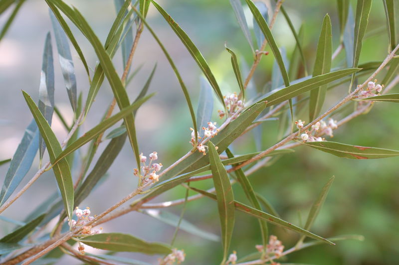 /*Phillyrea angustifolia Rosmarinifolia*/ blüht neben der Stammform (Heinrich hatte es schon gezeigt), während bei mir Phill. latifolia seine Blüten verweigert (obwohl sie gut 3-4m hoch ist). Der gezeigte Strauch erzeugt m.M. n. eine absolut mediterranes "feeling"