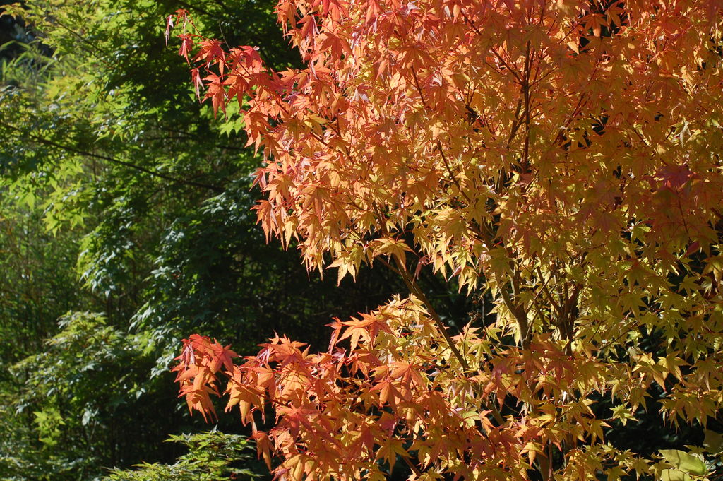 erstaunlich früh zeigt sich dieses Jahr die Herbstfärbung von /*Acer palmatum Sangokaku*/