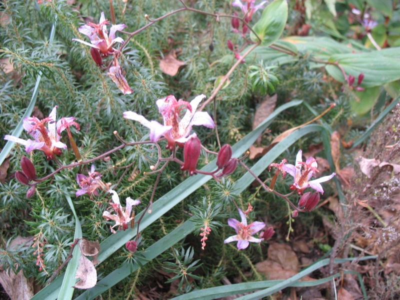 ..scheint Ticyrtis lasiocarpa zu sein. Komisch nur, dass auf den Fotos nie die Blüten farbecht rüberkommen