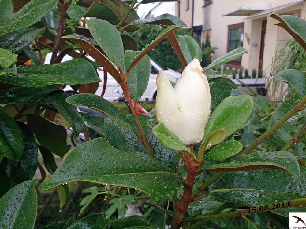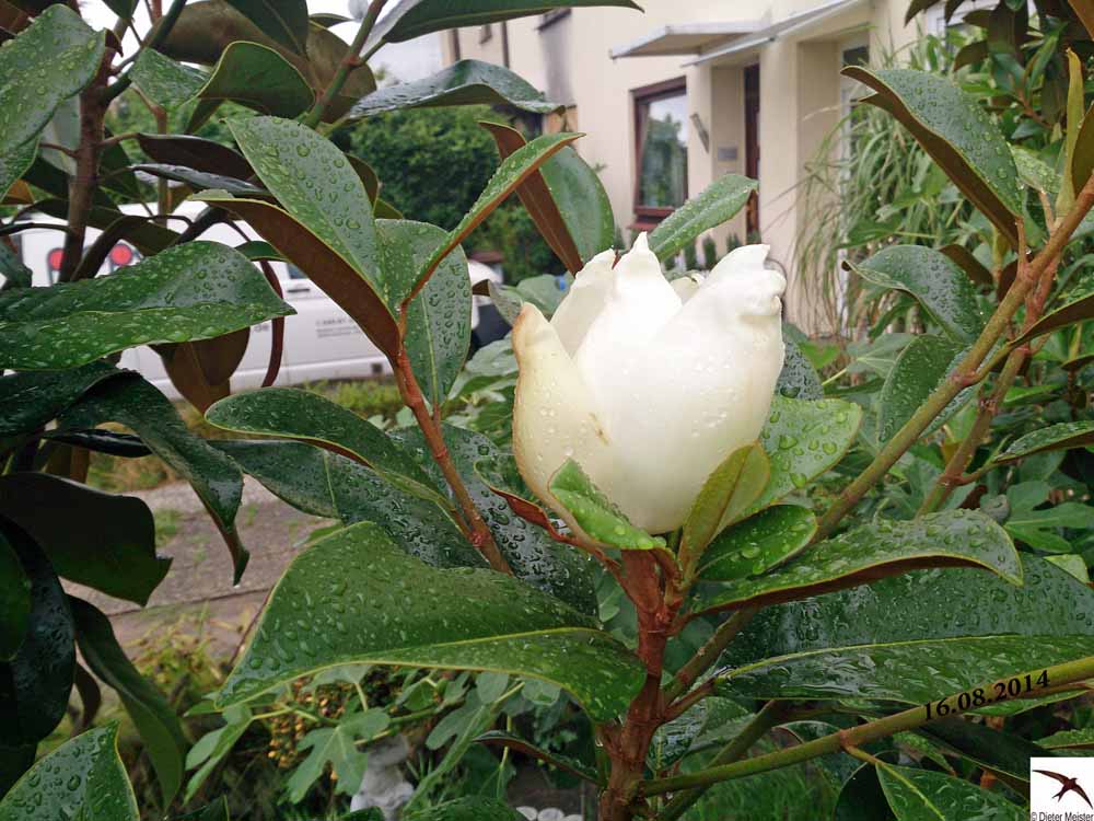 Seit den 15.versucht die Blüte der Magnolia grandiflora sich zu öffnen auch die Feigen reifen jetzt bei diesen Temp. schlecht.