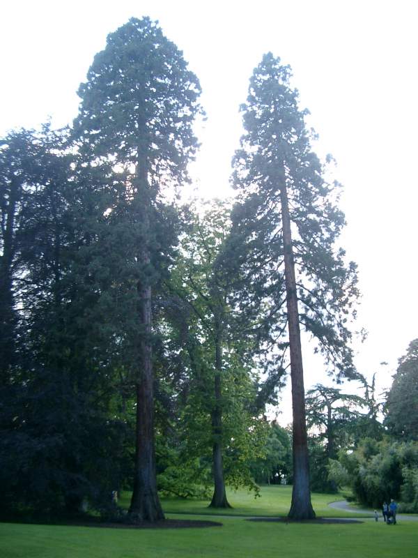 Im Arboretum befinden sich unter anderem mehrere riesige Bergmammutbäume (/*Sequoiadendron giganteum*/).