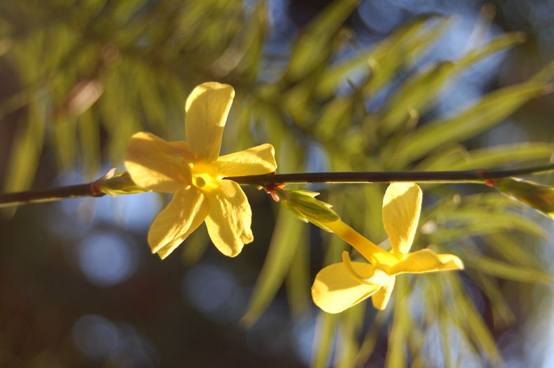 neben der Mahonie ist z.Zt. /*Jasminum nudiflorum*/ der Blüher schlechthin!! Hier vor Cunninghamia lanceolata