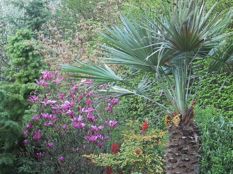 Wunderschöne Farben zwischen Cunninghamia lanceolata,Nandina domestica und Chamerops humilis (NICHT ausgepflanzt)