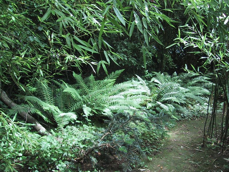 Eingebettet in einen Bambushain(v.a.Phyll.humilis u.viridigl.) vorwiegend Polystichum-Arten