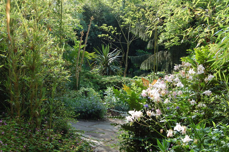 Li /*Chusquea couleou */, zentral beängstigender Austrieb von Phyllostachys prominens, hi picea breweriana u. Albizzia