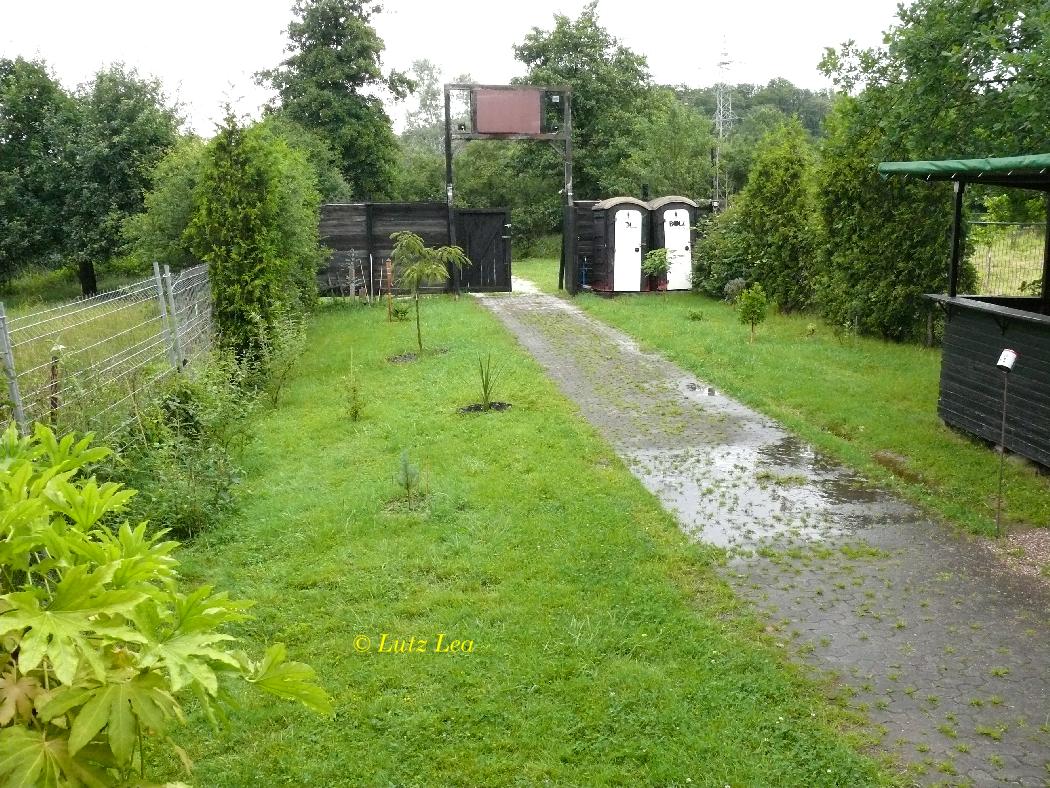 Vor drei Wochen soff hier alles nach dem Jahrhundertregen ab! Von der ganz großen Wiese (Nachbar) rechts im Bild kommt das Wasser in unseren Garten