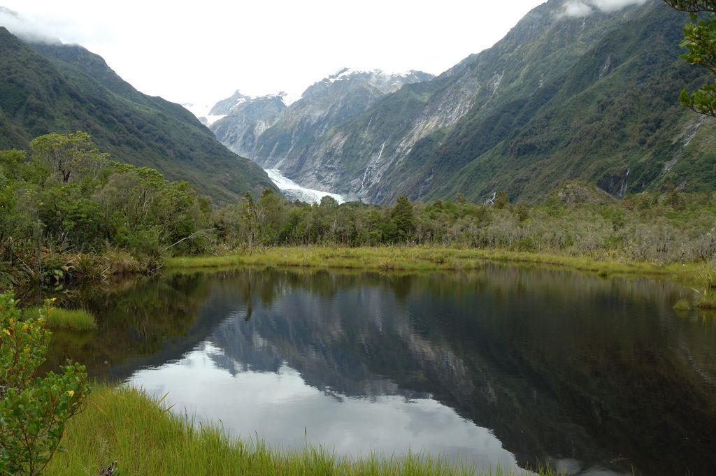 Am Franz Joseph's Gletscher, Westseite der Südalpen .Li vorne /*Griselinia littoralis*/