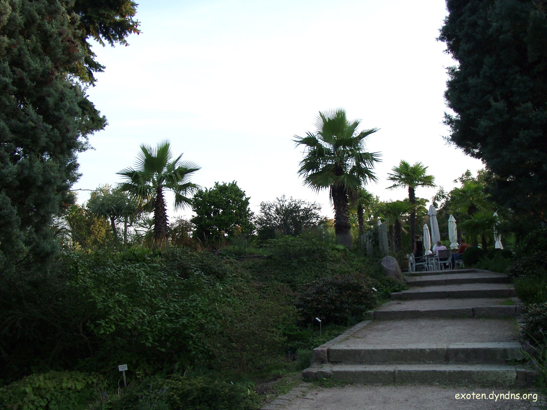 Die Kübelpalmen sind z.T. in traurigem Zustand, z.B. die Butias, ganz besonders die Phoenix dactylifera. Das geht eigentlich selbst in HH besser. Sieht stark nach zu warmer Überwinterung aus. Die vielen Trachys kümmern in winzigen Containern.