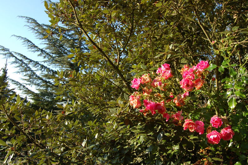 hat sich sogar diese Rose durch die kalten Nächte gemogelt.Li neben /*Quercus ilex Rotundifolia*/ Cedrus deodara, die Himalaya-Zeder