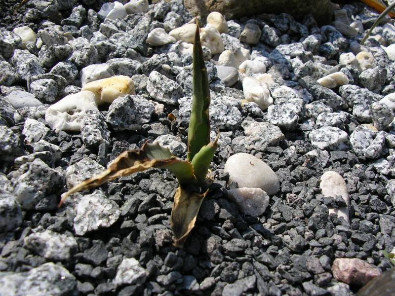 und hier der "Star" im Hangbeet- die seltene Agave megalacantha- von Fritz Hochstätter- aus dem Freiland, soll am besten aushalten von allen Agaven-, noch sehr klein, zeigt aber Waschtum.