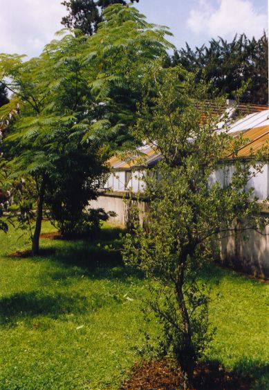 hier eine Korkeiche mit 2 m und bereits sehr schöner Korkrinde, und im Hintergrund eine Albizzia julibrissin mit ca. 5 m. (Frage an Michael Lorek: Ist das dieselbe Pflanze, die auf der Website des Tropengartens als Jungpflanze abgebildet ist? Wenn ja, von wann ist die Aufnahme? Auch die nachfolgenden Bilder der Magnolia grandiflora und der Musa-Hain scheinen identische Pflanzen der Tropengarten-Bilder zu sein.?)