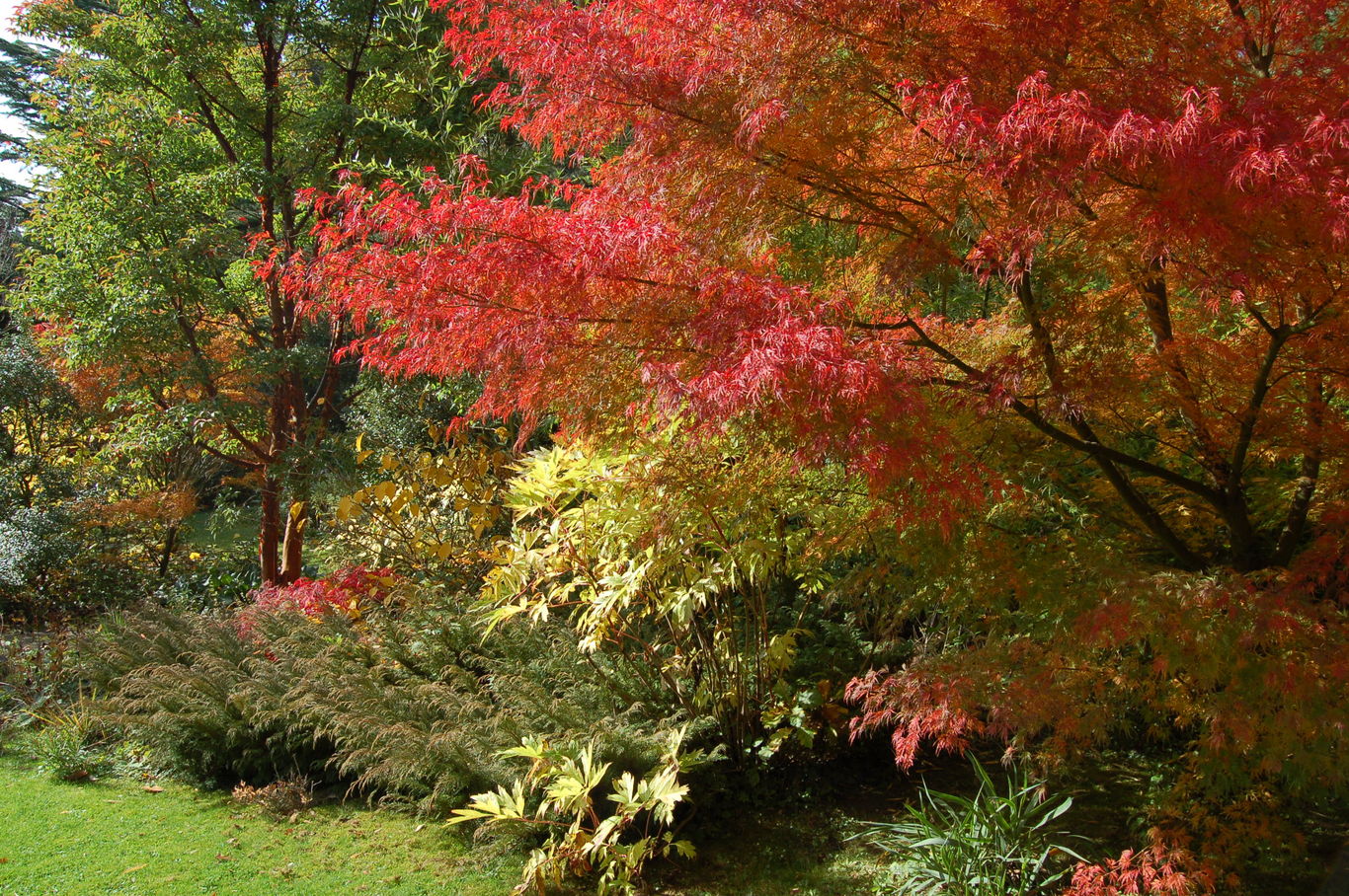 dass /*Acer griseum*/ mit SEINER Herbstfarbe noch nicht so weit ist! Im Vordergrund Microbiota decussata.#AM