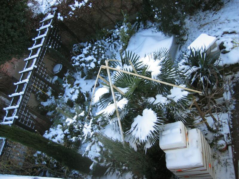 unter dem Regenschutz mit Fließ ist die Jubaea chilensis