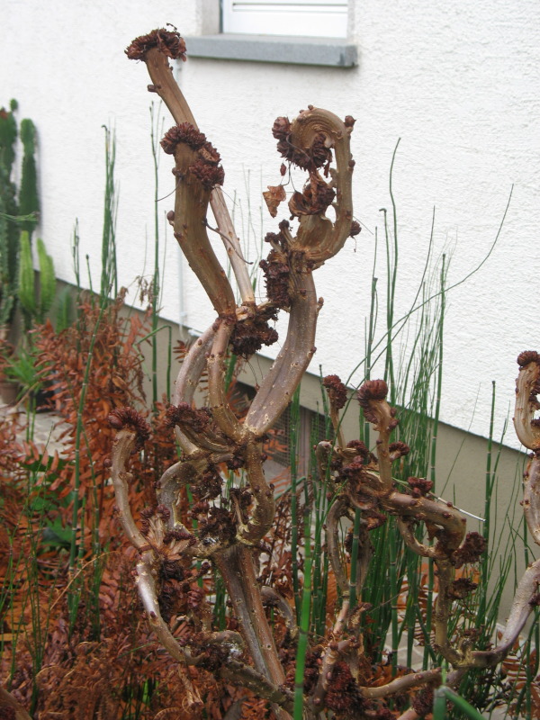 ...erscheint alle Jahre wieder mit dem Laubfall und sieht immer etwas anders aus. Aesculus hippocastaneum 'Monstrosa' fällt im Sommer weiter nicht auf und ist dann einfach eine dichte zwergige Roßkastanie.