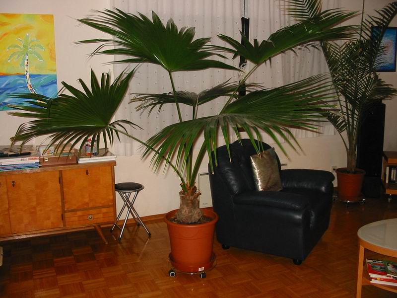Mit Ravenea (im Hintergrund) habe ich nicht so gute Erfahrungen gemacht, die Blätter vertrocknen regelmäßig von außen her, die Luftfeuchtigkeit dürfte im Haus einfach zu gering sein.