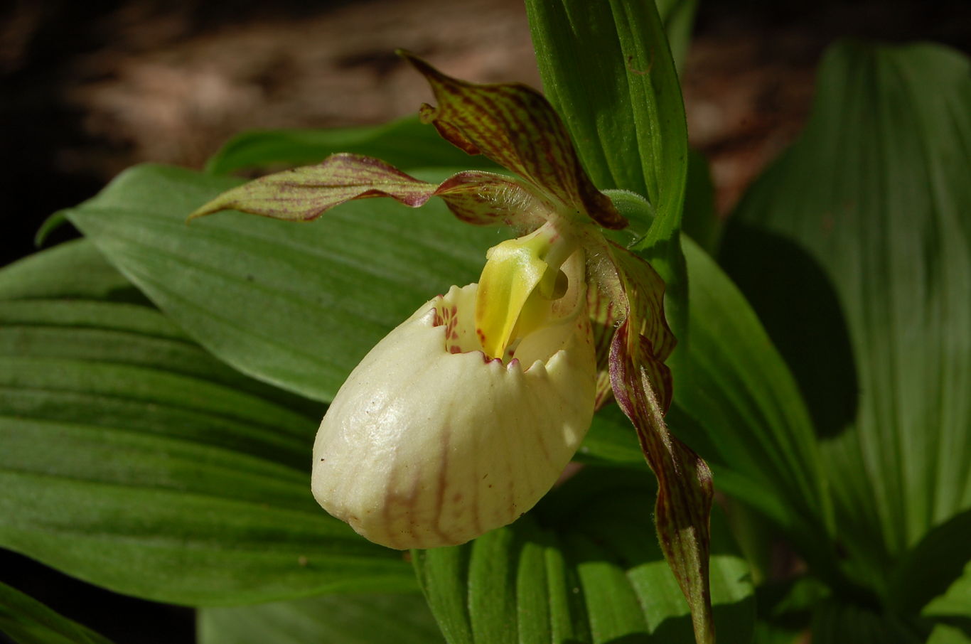 auch die Blühdauer der Cypripedien ist erstaunlich (hier: Cypripedium calceolus x Cyp. fasciolatum)