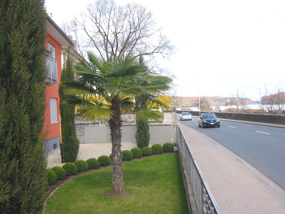 Diese Trachy (die ich schon einmal zeigte)in dem sehr schön angelegten Vorgarten steht auf dem gleichen Grundstück direkt am Rhein, rechts sieht man den „Rheinbogen“ bei Nierstein.