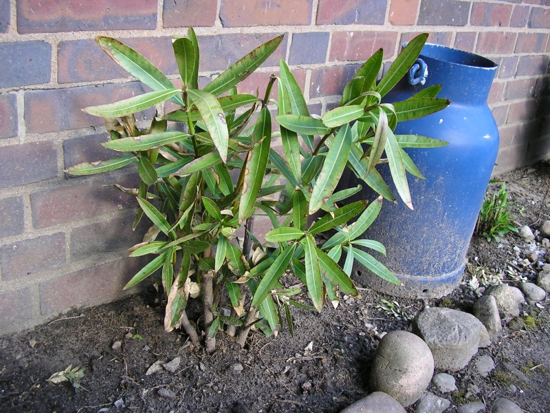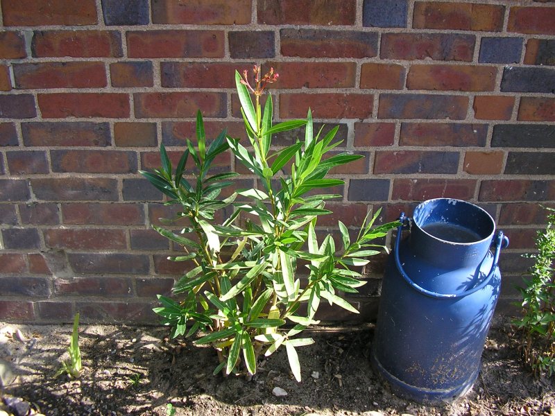 im Frühsommer rettete ich einen fast völlig vertrockneten Oleander vor der Kompostierung und pflanzte ihn aus: