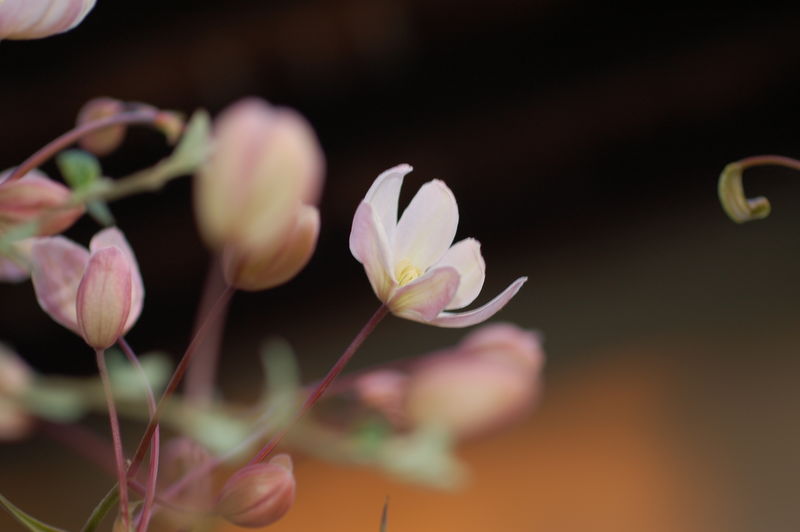 An die duftenden Blüten von /* Clematis armandii*/ komme ich leider nicht näher heran (ca 4m hoch in den Wald hinein gewachsen)