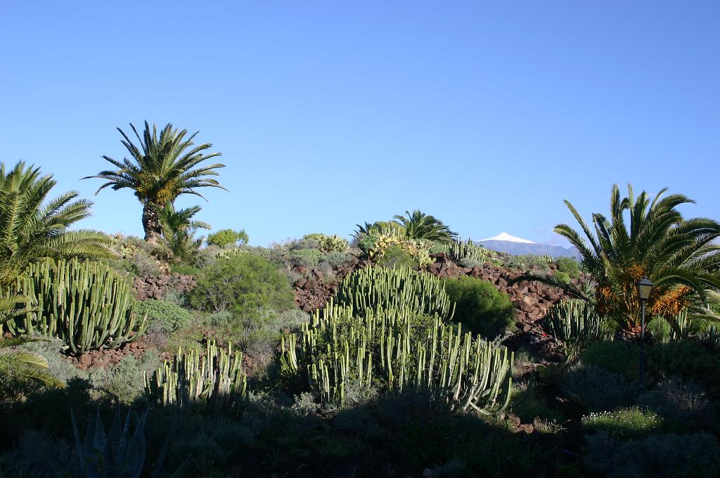 Phoenix, Sukkulenten und der schneebedeckte Teide im Hintergrund: