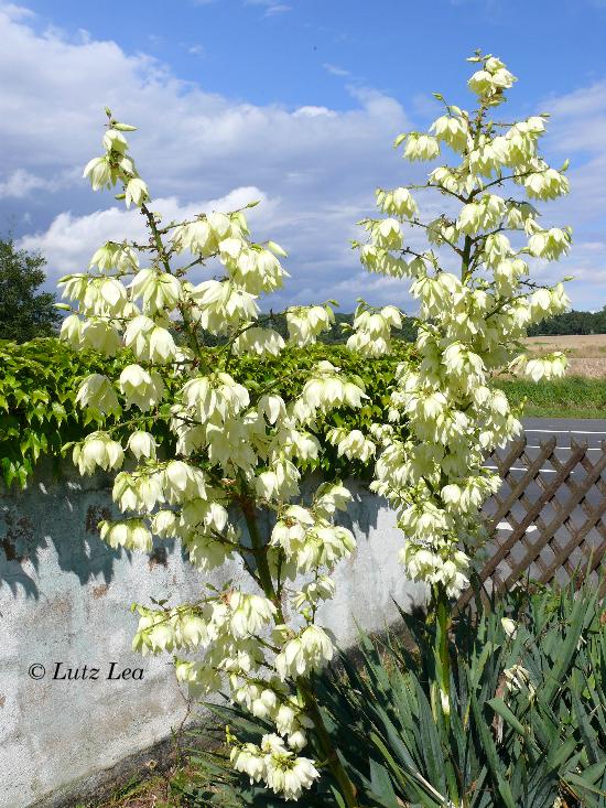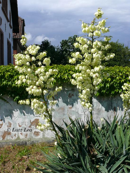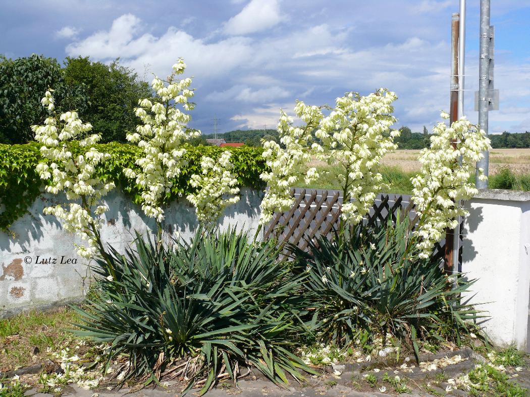 immer wenn ich in unseren neuen Garten fahre, komme ich an diesen zur Zeit herrlich blühenden Yuccas vor dem Restaurant (Parkplatz) "Kupferkanne" an der B3 vorbei.