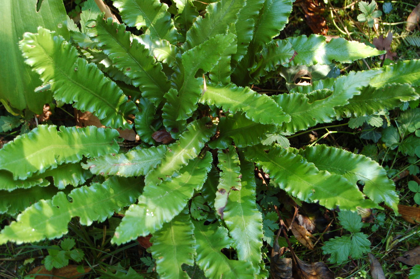 die Mutterpflanze steht ca 4m daneben:/*Phyllitis scolopendrium Undulatum*/#AM