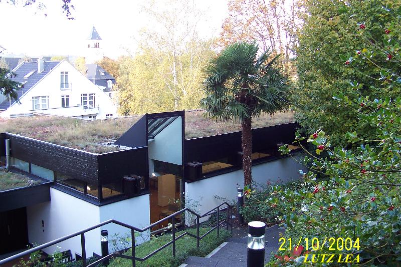Das Gebäude links von der Palme ist der Eingangsbereich (Rezeption/Anmeldung) zum "Adenauer-Haus".