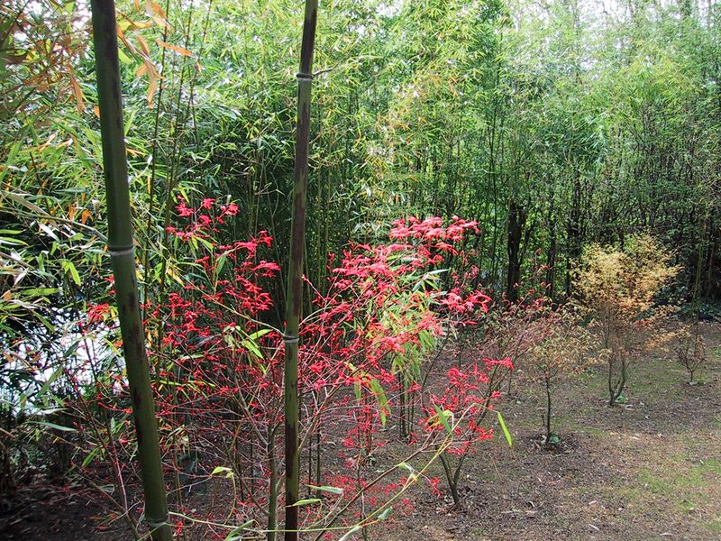 Eine Momentaufnahme von heute nachmittag: Versch.Phyllostachys-Arten (P.nigra Boryana,bissetii,viridiglaucescens),Fargesia robusta u. mehrere Acer palmatum-Sorten(Deshojo,Seigen,Tsuma Beni u.Butterfly)lassen den fernen Osten auch in Runkel/Lahn aufleben.In wenigen Tagen werden die Farben wieder ganz anders sein- das ist u.a. das Schöne und Beeindruckende an den ostasiat. Ahornen.
