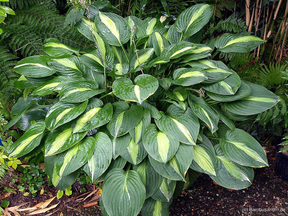 /*Hosta striptease*/kein Exot im engeren Sinn, aber eine der schönen und einfachen Hostas mit ausgeprägter Zeichnung.