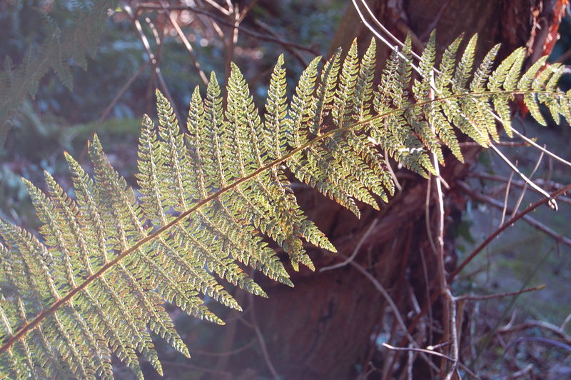 Der immergrüne filigrane /*Polystichum setiferum Herrenhausen*/ im späten Licht der Abendsonne