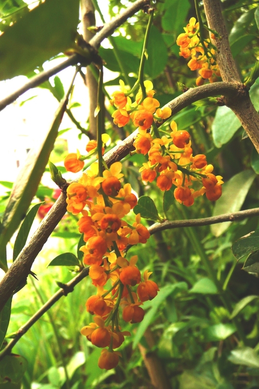 Speziell für Bernd,/*Berberis valdiviana*/ leider sind die meisten Blütentrauben am Boden (noch) und ein bessres Foto war leider nicht drin.