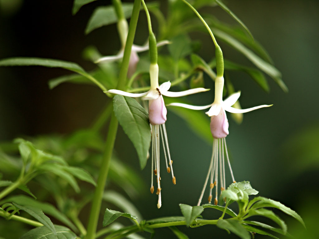 Auch die Fuchsien sind früh dran, blühen am alten Holz,schon, bzw. noch vom alten Jahr, 1m hoch/*Fuchsia magellanica 'Hawkshead'*/ in cremeweiß