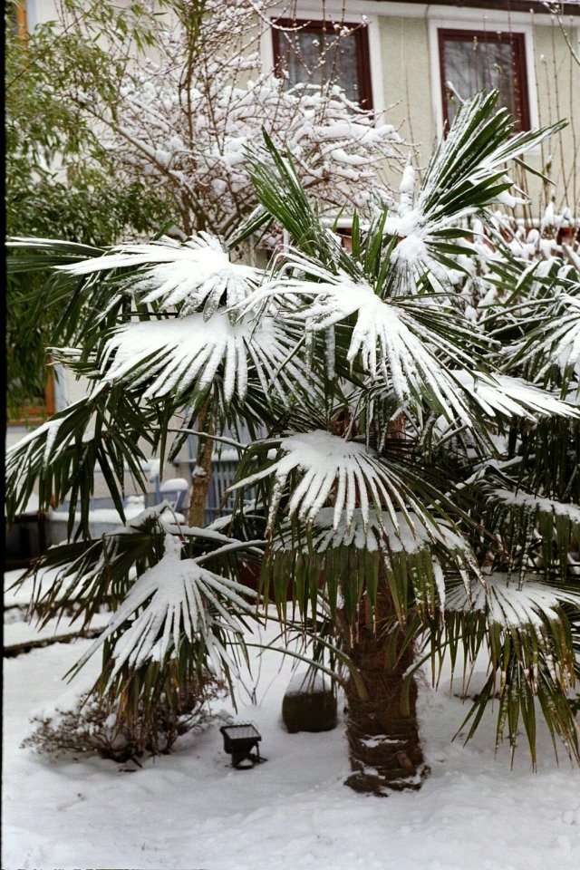 diese Trachy habe ich Frühjahr 1997 mit ca 30 cm Stamm gepflanzt. Es handelte sich um einen "Rettungskauf" von Rewe in armseligem Zustand.