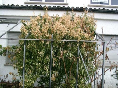 Die Neutriebe aus dem Sommer 2005 sind schon bei -5°C erfroren und jetzt nur noch braun: