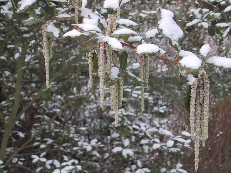 Neben Hamamelis,Mahonia,Chimonanthus u. div. Viburnum-Arten eines der wenigen z.Zt.blühenden Gehölze.Wunderschön die bis zu 20cm langen männl.Blütenkätzchen!