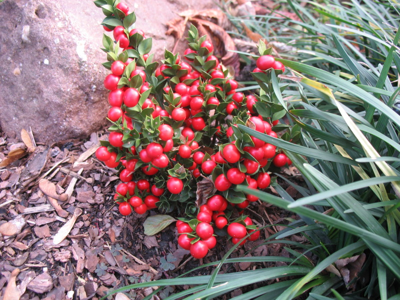 aus ganz aktuellen Anlass: ich hatte heute Vormittag einen Gartentermin und dort kam mir auch gleich Ruscus aculeatus 'John Redmond' vor die Augen in seiner typischen Form. Glücklicherweise war der Digiknipser dabei