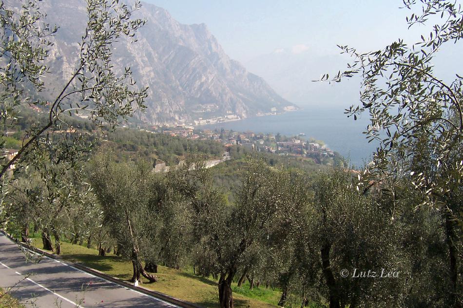 Blick von der "Via Panoramica" auf den nördlichen Teil von 'Limone' - alte zerfurchte knorrige Olivenbäume dominieren bis zu einer