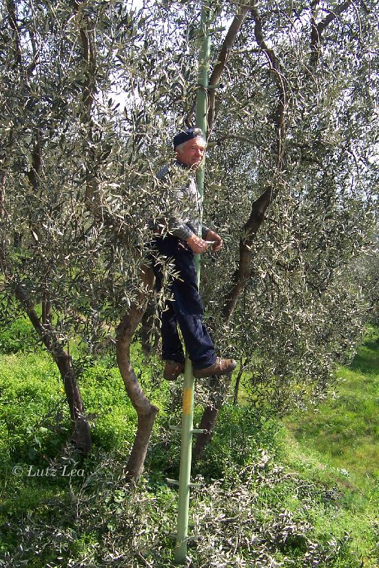Auch dieser Olivenbauer schneidet seine Bäume nach der "Trauerform" - alle