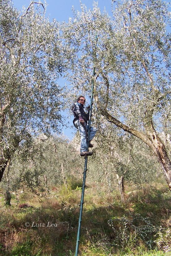 Ein Olivenbauer beim Schnitt seiner vielen Bäume - es hat sich der