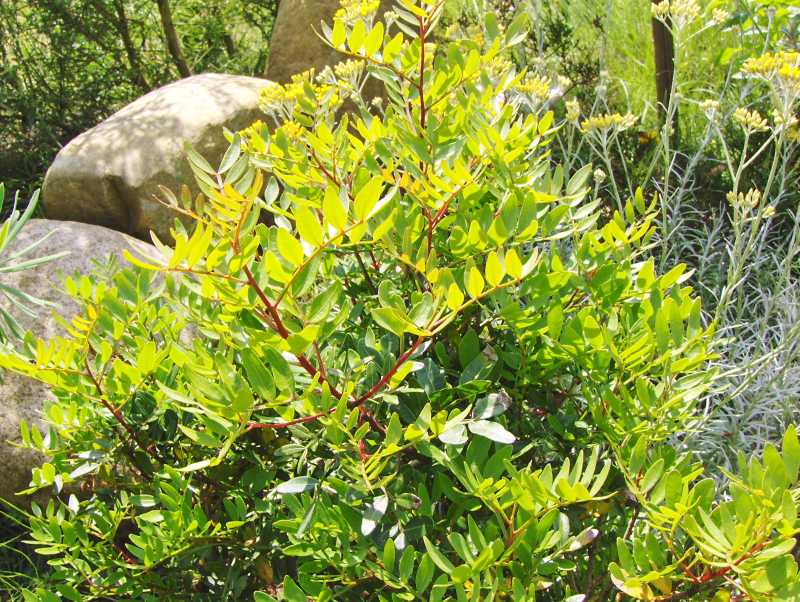 Pistacia lentiscus (Mastixstrauch) macht sich langsam bemerkbar von der Grösse her.