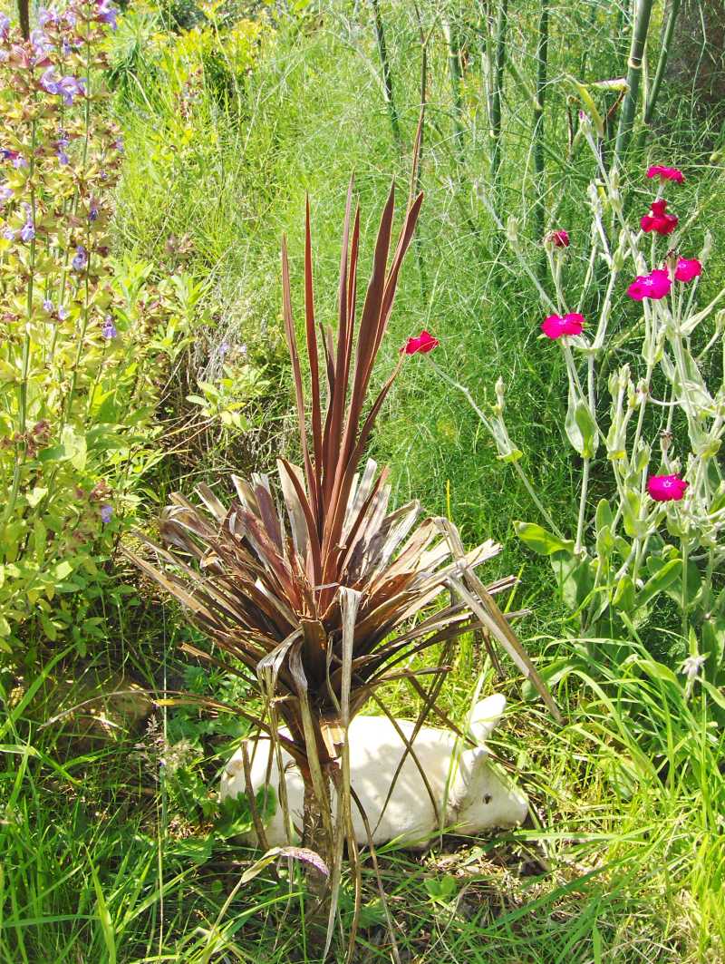 Meine Cordyline australis rote Form hat sich nach dem Kälte/Sturm/Regenschock doch noch gefangen und treibt wieder aus. Geduld, Geduld muss man manchmal haben!
