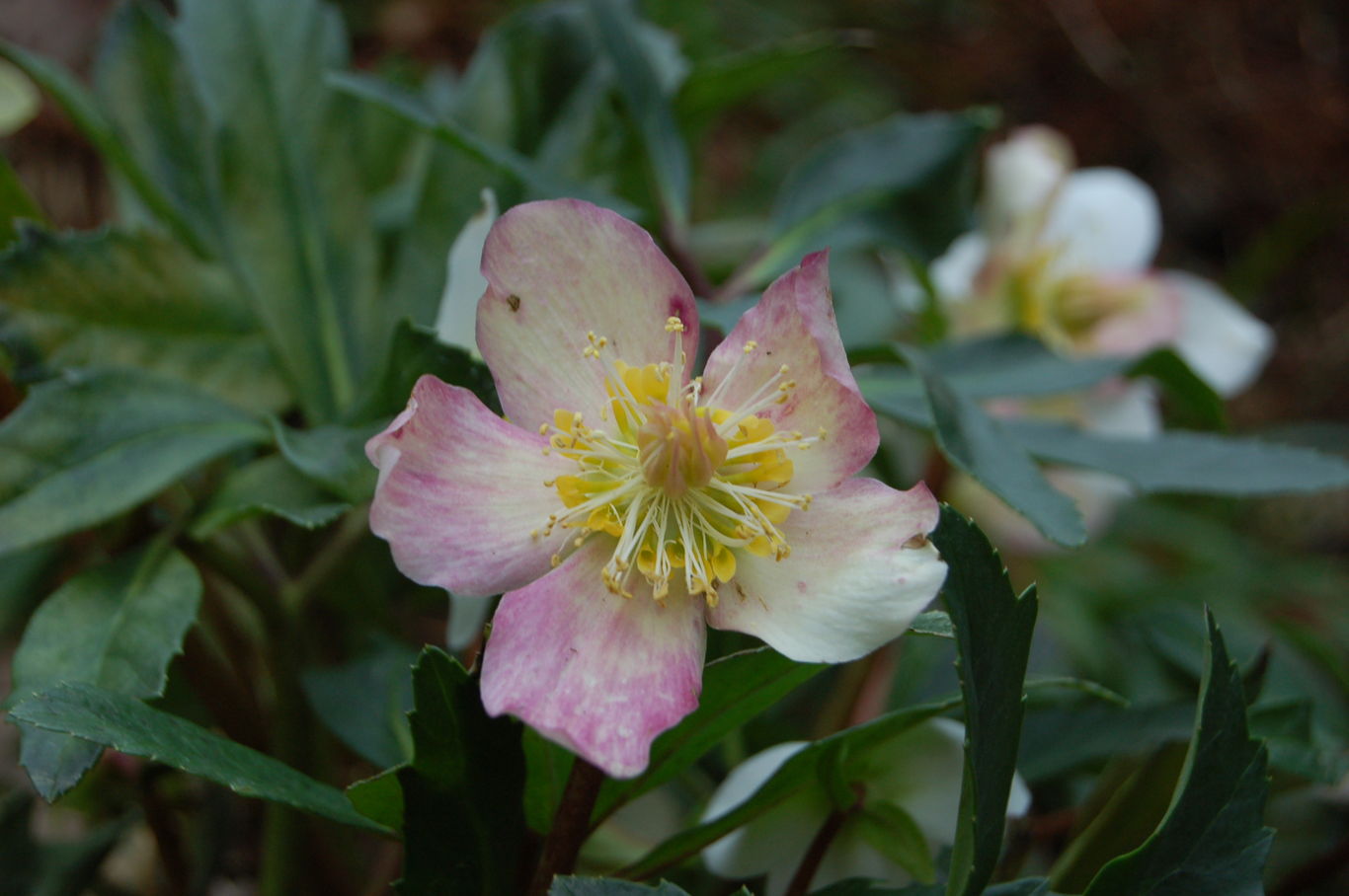 Helleborus-Hybride "Jakob" mit weißen und rosafarbenen Blüten!#AM