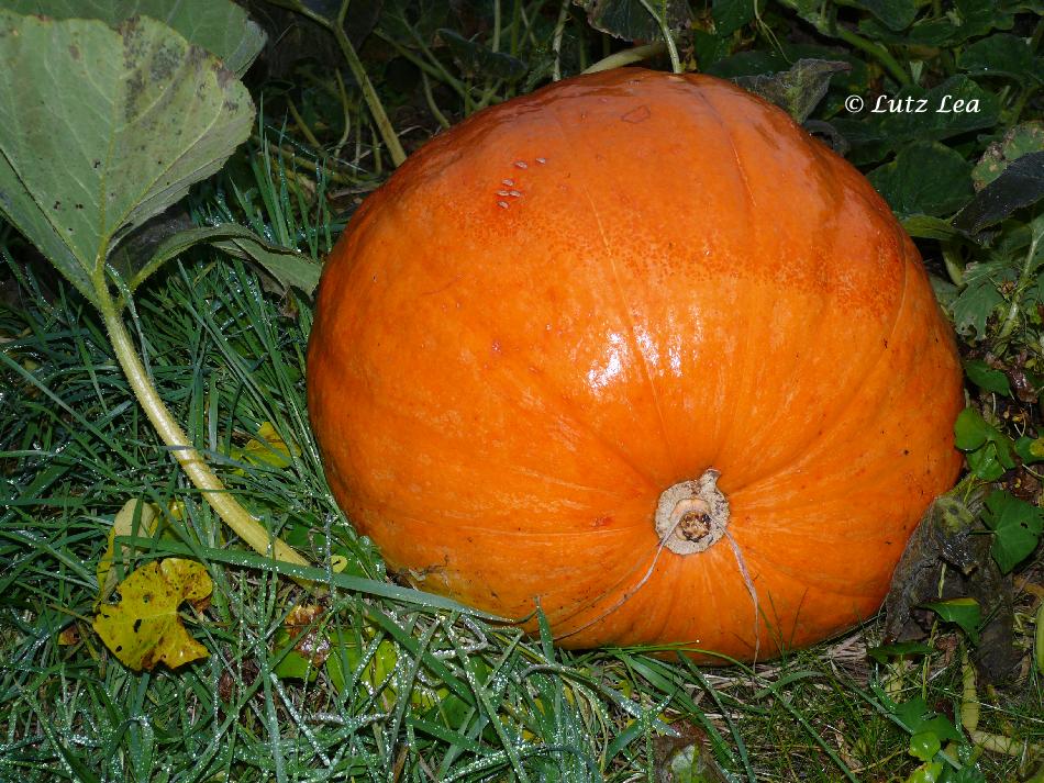 Ein riesen Brummer - Kürbis gedeih wird bald geerntet.