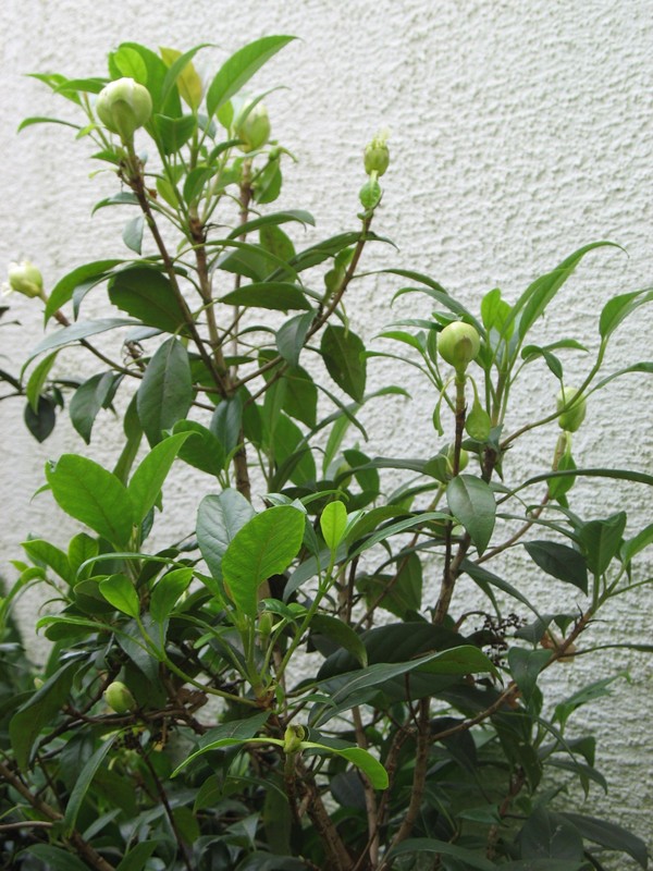 Hydrangea seemannii signalisiert mit dicken Knospen die baldige Blüte