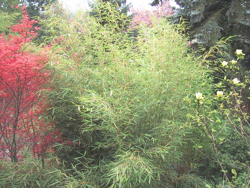 Magnolia Yellow Bird, die Züchtung mit der wahrscheinlich intensivsten gelben Farbe!,dazwischen Fargesia robusta!