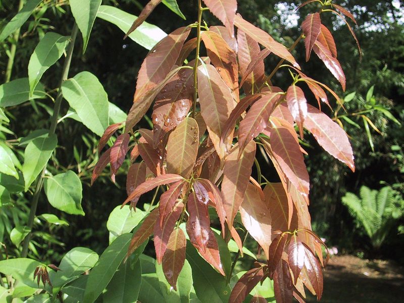 Für mich immer noch die schönste immergrüne Eiche- diesmal mit ihrem phantastischen, weinroten Junitrieb- die japan. Bambusblättrige Eiche!!