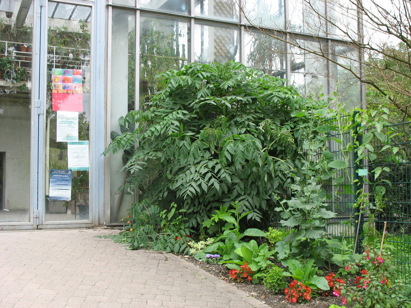Am Eingang /*Dahlia imperalis*/, in der Heimat ein Gehölz, hier nur staudig und berits wieder über 2 m hoch.