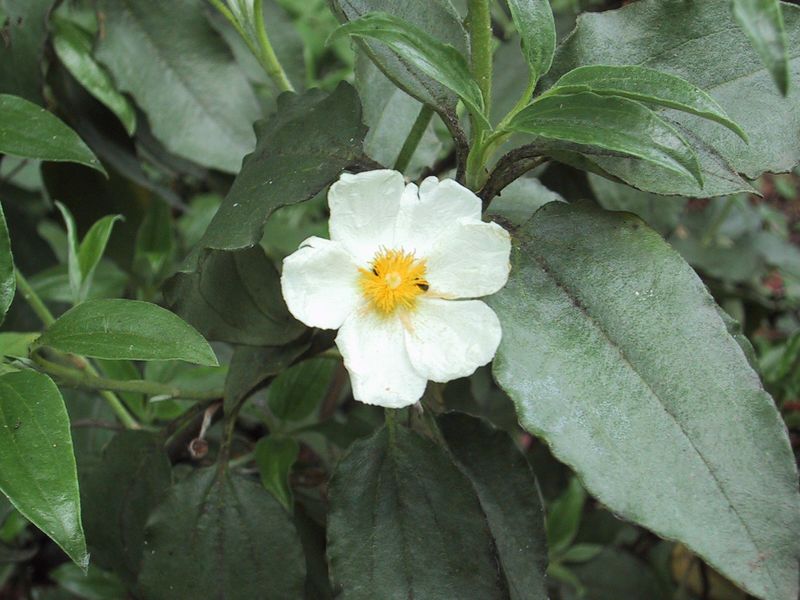 Härteste aller Cistus-Arten (bis 2,5m hoch) mit intens.duftenden immergr.Blättern (Weihrauchähnl.Geruch)