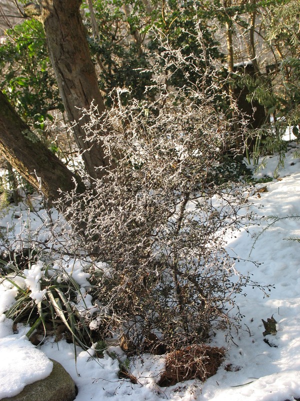 ...muss die Beurteilung von Corokia cotoneaster. Wenn sie nicht gerade blüht sieht sie durch die schwarzgrünen Blättchen immer irgenwas von halbtot aus![]()