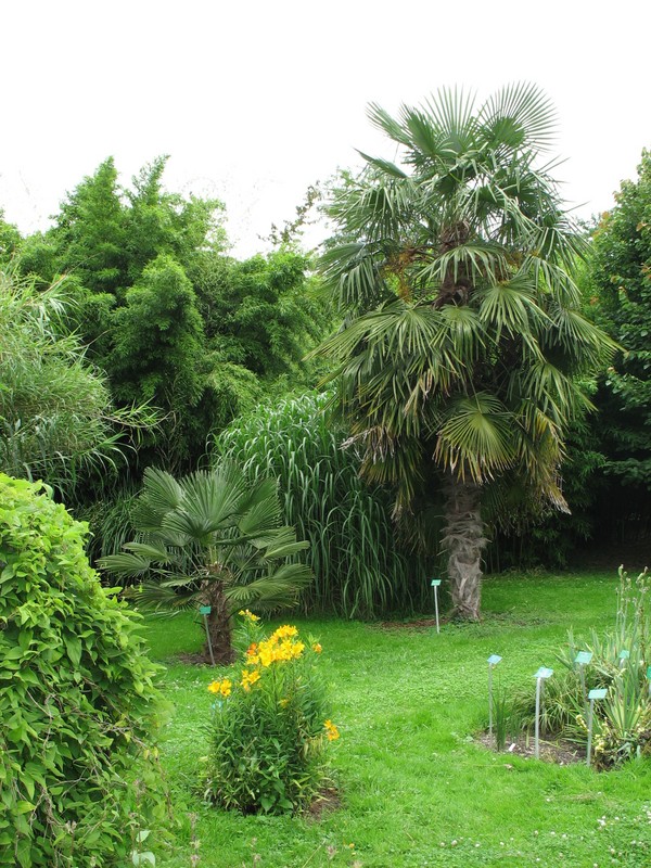 auch Trachycarpus fortunei gedeiht im BG vortrefflich, links T. wagnerianus